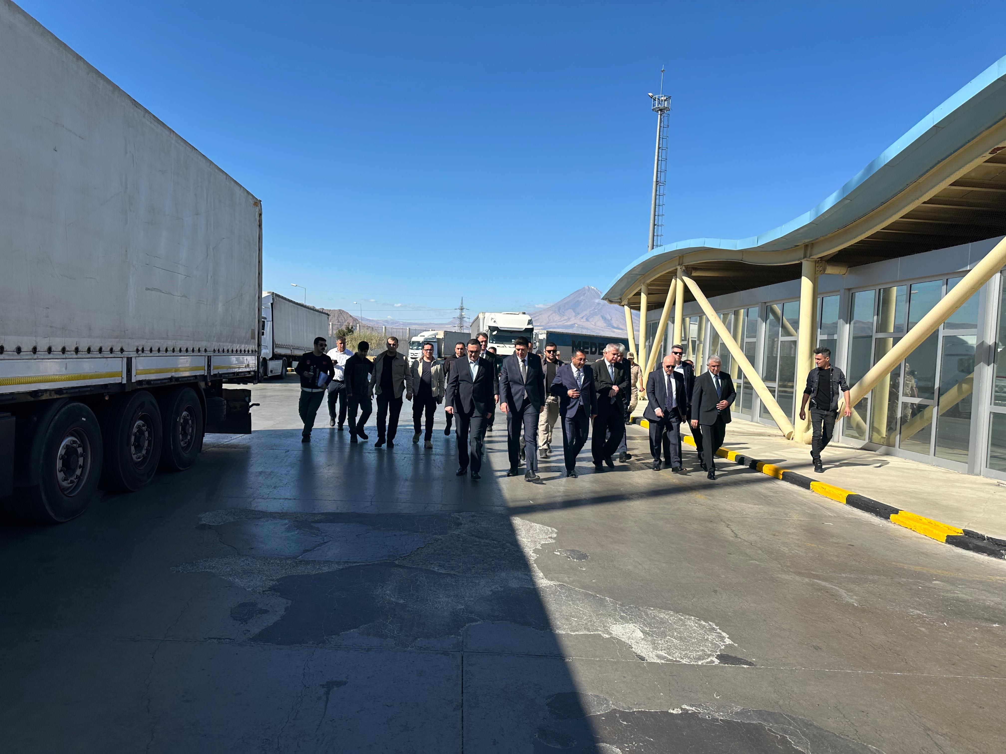 Bakan Yardımcımız Sayın Sezai UÇARMAK, Destek Hizmetleri, Tasfiye İşleri ve Döner Sermaye Genel Müdür Yardımcısı Sayın Barış NALÇACI, Gümrükler Genel Müdür Yardımcısı Sayın Münir UĞUZ, GTİ Genel Müdürü Sayın Ahmet GÜRLEK 23 Eylül 2025 tarihinde Dilucu Gümrük Sahasında incelemelerde bulundu.